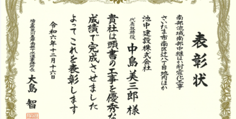 【令和6年12月 埼玉県荒川左岸南部下水道事務所より施工者表彰を受賞しました】 2024年12月16日 Author: wpmaster Category: お知らせ 令和6年12月16日 令和6年度埼玉県荒川左岸南部下水道事務所で表彰が行われました。 … read more