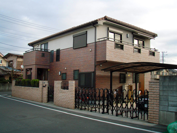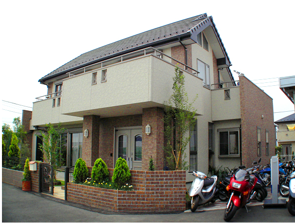 【場 所】越谷市東町 中川の程近くに建てた住宅です。庭や駐車場も広く開放感のあるデザインです。 |