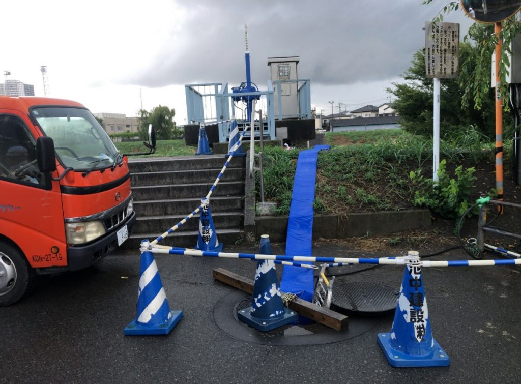 令和5年8月15日台風7号接近に伴い水防活動(ポンプ設置)を行いました。