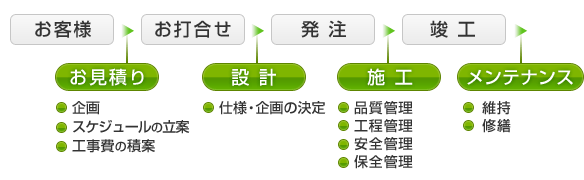 技術の進歩を的確にとらえ、クオリティーの向上に努め、お客様が長期に渡り安心満足していただける様、私達の豊富な経験と確かな技術力でお客様の夢を現実のものとするべく全力を傾けサポートしていきます。