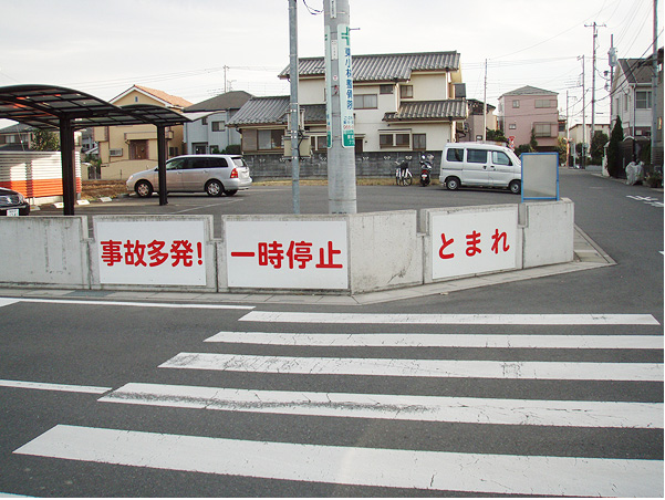 【標識設置】 当社の目の前の交差点では事故が多く2ヶ月に一回程度の割合で起きています。一時停止の注意を促すために、当社の外構の壁に「とまれ」と「一時停止」の標識を設置しました。 今年の5月に設置してからは、まだ事故が起きていないので効果があったと言るでしょう。 |