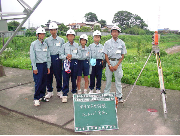 【中学生体験学習】 毎年行われる、越谷東中学校の生徒による体験学習が今年も7月に行われました。 性格も体格も様々でしたが、皆一生懸命参加してくれました。未来の土木・建築技術者がここから誕生することを祈ります。 |